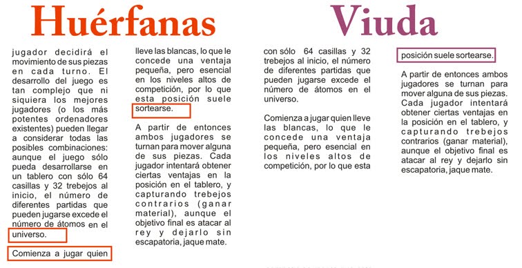 Línea viuda: aquella que, siendo la última de un párrafo, aparece al principio de la página o columna siguiente, por lo que se muestra aislada de su contexto.