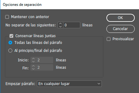 Mediante el uso de «Opciones de separación».